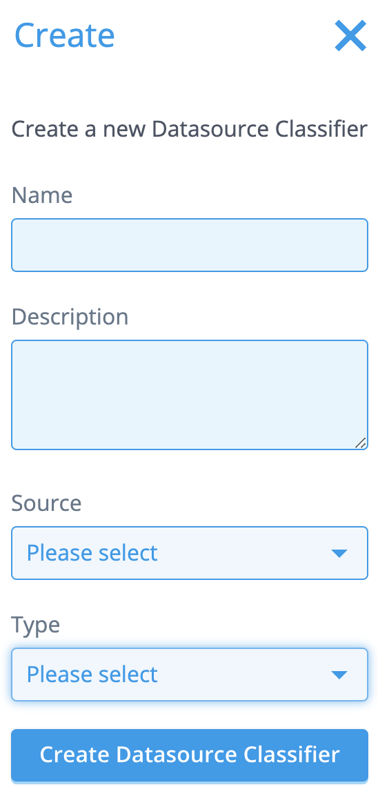 Go to [Smart Integration → Datasource Classifiers] and click the Create button on top of the screen.