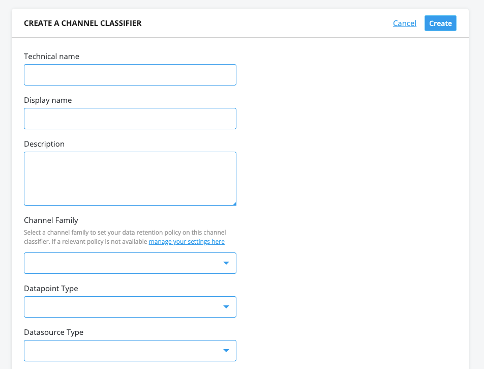 - Go to [Smart Integration -> Channel Classifiers -> Manage Channel Families -> Add Channel Family]